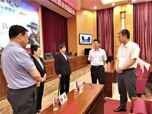 集團黨委書記、董事長張旭東與集團黨委班子一同聆聽報告會,并在會前親切接見了報告會成員。