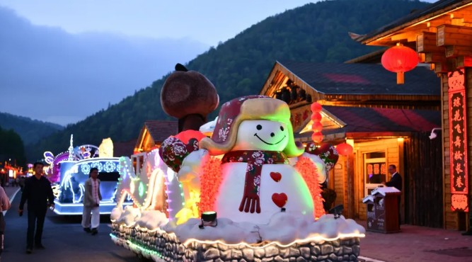 雪鄉(xiāng)景區(qū)延續(xù)了冬季夜游的傳統(tǒng)特色,花車巡游熱鬧非凡,各主題花車獨具特色,像流動的童話世界;東北大秧歌熱情奔放,舞步歡快,盡顯民俗風(fēng)情;民族樂器樂隊演奏的樂曲悠揚動聽,令人陶醉。游客們可以積極參與其中,深度感受濃郁的東北特色民俗文化。夜幕降臨,璀璨的亮化景觀逐一點亮,流光溢彩的燈光將雪鄉(xiāng)裝扮得宛如夢幻世界。露天蹦迪派對也隨之激情開啟,動感的音樂、絢爛的燈光,讓游客在青山環(huán)抱之中盡情釋放活力。與此同時,特色露天燒烤香氣四溢,各類新鮮食材在炭火上滋滋作響,搭配上冰爽的啤酒,為游客帶來舌尖上的極致享受。